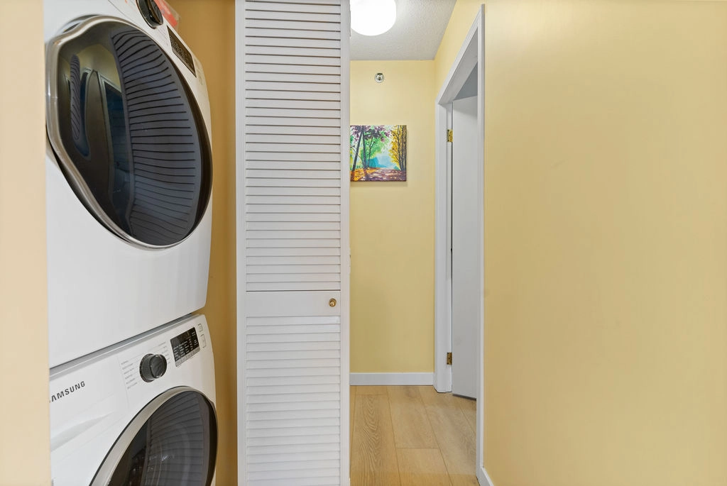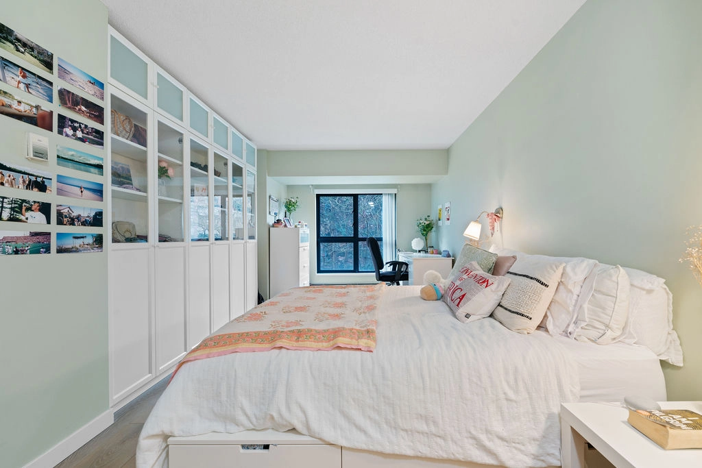 Situated on the 4th floor facing South and overlooking the picturesque, Yaletown neighborhood, this property boasts a well-designed layout with generous living and dining spaces, two entrances, and both in-suite storage and laundry.